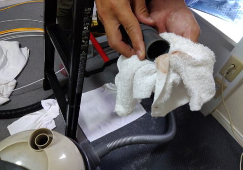 エアコン内部ドレンホースの汚れを専用の機器で洗浄いたします。